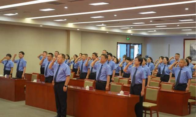 歌声落下,誓言再起。在院党组书记、检察长曹子刚的领誓下,全体党员面向鲜红党旗,高举右拳,庄严宣誓。八十字的誓词字字千钧,涤荡心灵,将滚烫的初心融入血脉,化作履职尽责、奋勇前行的源源动力。