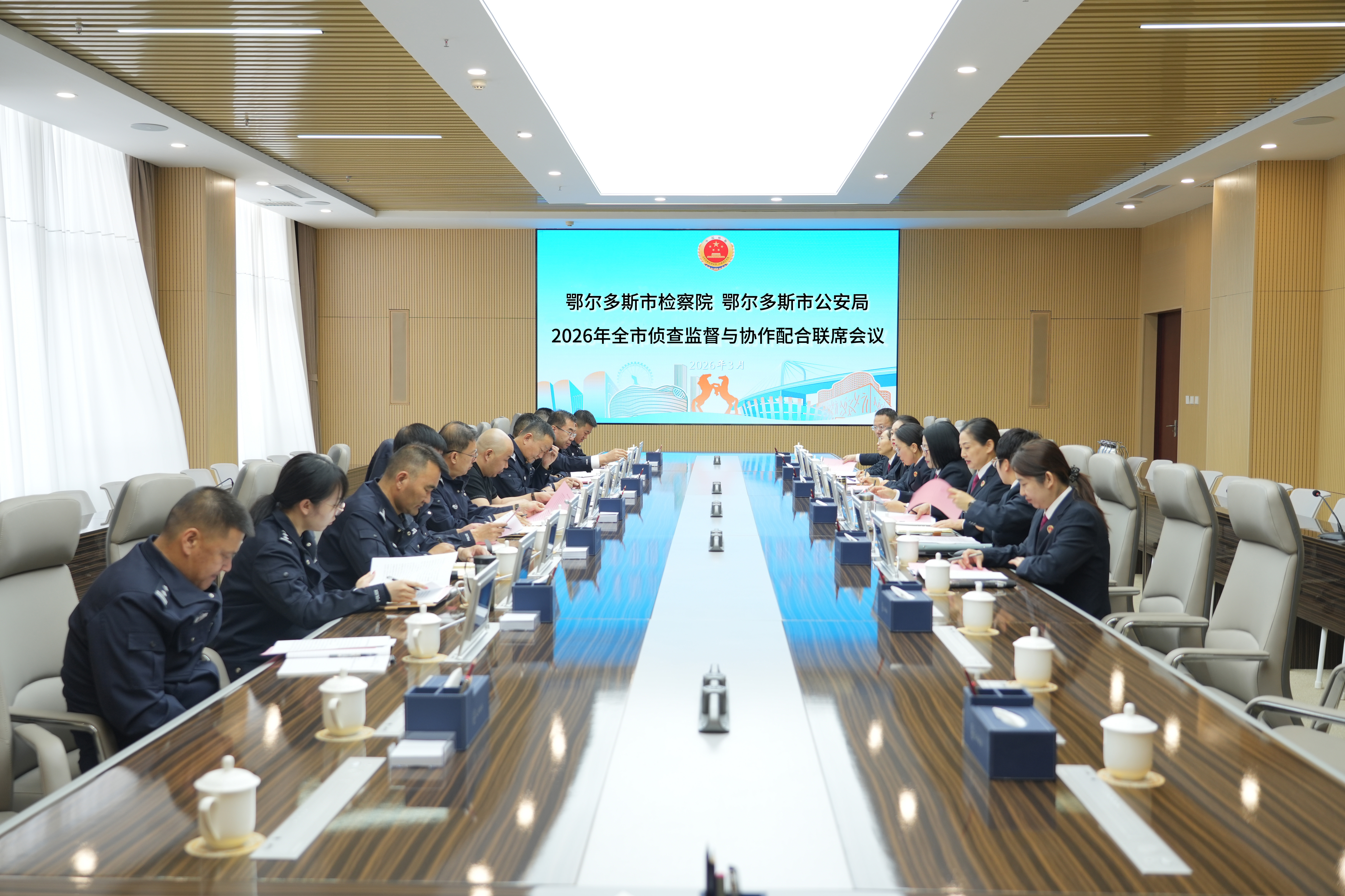 为进一步加强侦查监督与协作配合工作,强化检警执法司法衔接,落实以审判为中心的诉讼制度的改革,持续提升刑事执法司法规范化水平和刑事案件办案质效。3月30日,鄂尔多斯市人民检察院联合鄂尔多斯市公安局在市检察院召开2026年全市侦查监督与协作配合联席会议。市检察院党组成员、副检察长韩丽春主持会议,市公安局党委委员、副局长魏振选及市公安局法制支队、刑侦支队、经侦支队、禁毒支队、治安支队、环食药侦支队负责人、市检察院普通犯罪检察、重大犯罪检察、职务犯罪检察、经济犯罪检察、知识产权检察等部门负责人参加会议。